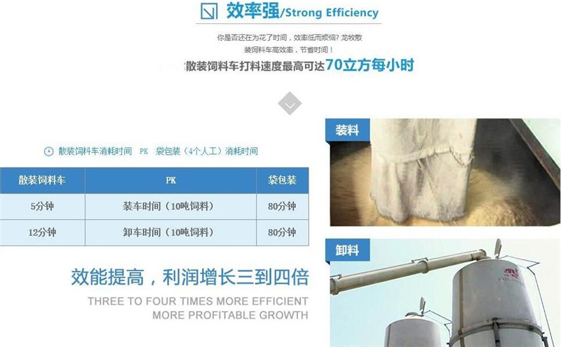 散裝飼料車的優(yōu)勢: 散裝飼料的生產可實現(xiàn)直接生產直接裝車,隨產隨出,不需要進行提前備貨,不占用倉儲設施,也不會出現(xiàn)停產等待拉料的現(xiàn)象,使飼料生產實現(xiàn)計劃管理,生產效率得到提升。 ★獨有倒梯形設計,散裝飼料在罐體內密封輸送,V字形罐體卸料順暢,減少飼料的耗損,保證質量,避免污染。 ★運輸比包裝成袋運輸不但節(jié)省勞動力,而且成本較低。 ★可選電動卸料、全液壓卸料、氣卸為全自動上料卸料,可連續(xù)作業(yè),大大提高生產效率。 ★罐體內可加裝分倉,可同時運輸多種不同類的飼料或膨人介質。部件標準化,容易維修保養(yǎng)。 頂部進料倉