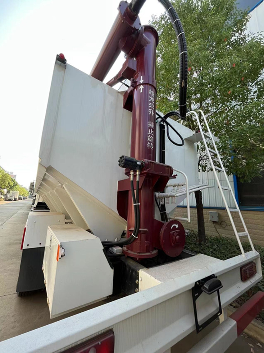 可獨(dú)立控制各分倉(cāng)卸料順序和速度,整車3條蛟龍(底部水平絞龍、尾部垂直絞龍、頂部卸料絞龍),由取力器經(jīng)車輛變速箱取力后,將動(dòng)力傳動(dòng)至高壓油泵以驅(qū)動(dòng)液壓系統(tǒng)帶動(dòng)各絞龍工作,或者由3個(gè)5.5kw 380v電機(jī)帶動(dòng)各絞龍工作,頂部絞龍液壓控制舉升,可左右旋轉(zhuǎn)180°此車公告+環(huán)保+燃油齊全,全國(guó)上戶無(wú)憂!