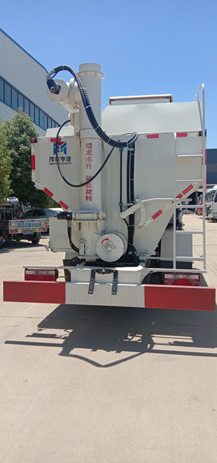 可獨(dú)立控制各分倉(cāng)卸料順序和速度,整車3條蛟龍(底部水平絞龍、尾部垂直絞龍、頂部卸料絞龍),由取力器經(jīng)車輛變速箱取力后,將動(dòng)力傳動(dòng)至高壓油泵以驅(qū)動(dòng)液壓系統(tǒng)帶動(dòng)各絞龍工作,或者由3個(gè)5.5kw 380v電機(jī)帶動(dòng)各絞龍工作,頂部絞龍液壓控制舉升,可左右旋轉(zhuǎn)180°此車公告+環(huán)保+燃油齊全,全國(guó)上戶無(wú)憂!