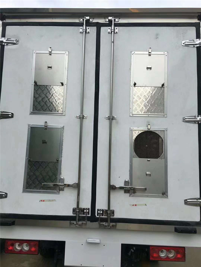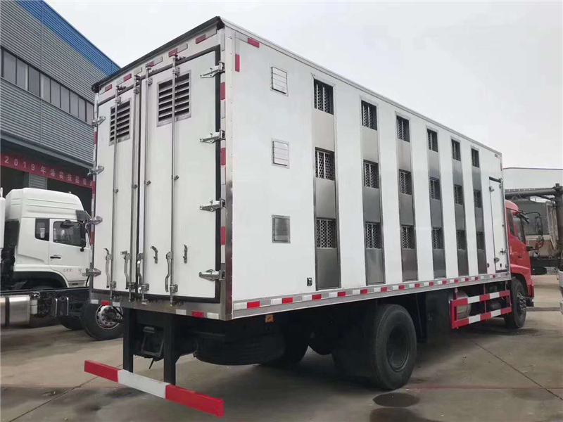 【豬苗車】上裝配置:外玻璃鋼,內(nèi)不銹鋼,兩層液壓升降層板,尾部液壓翻轉(zhuǎn)上豬平臺,層板為不銹鋼骨架鋪鋁花紋板。外部電動升降窗,排氣扇,柴油發(fā)電機,暖風(fēng)加熱,喂水系統(tǒng),凈水箱、污水箱,箱內(nèi)攝像頭監(jiān)控,倒車影像,凱利制冷機組。(油暖加熱為選裝部件)